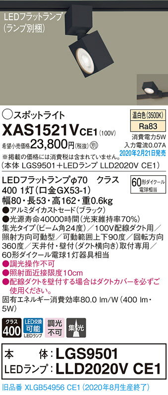 カテゴリ:照明器具 住宅照明 スポットライト メーカー:Panasonic パナソニック 型番:xas1521vce1 旧型番:XLGB54956CE1 ◎照明関連 【おすすめ Fケーブル】 (※適合に関しては事前にご確認ください) VVF1.6x2C VVF2.0x2C VVF1.6x3C VVF2.0x3C