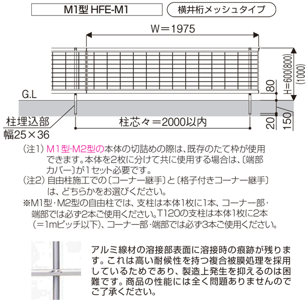 柱の位置が自由に(規定内)施工できるので、ブロック等の穴に合わせた位置で本体をしっかりと支える造りのフェンス。