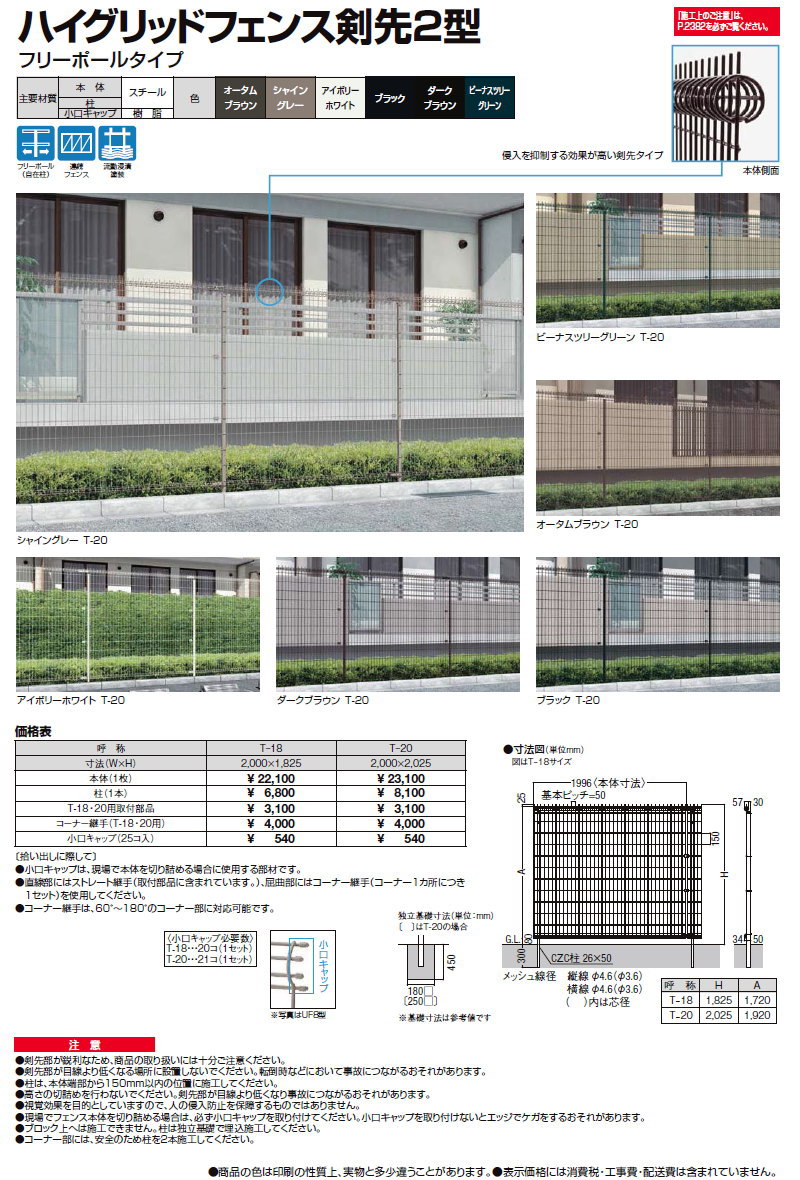 商 品 詳 細商品名ハイグリッドフェンス【剣先2型 柱 1本 T-20】カラーオータムブラウン、シャイングレー、アイボリーホワイト、ブラック、ダークブラウン、ビーナスツリーグリーン材質本体:スチール 柱:スチール・アルミ形材 小口キャップ:樹脂注意事項●柱と取付部品は、別梱包になっています。
